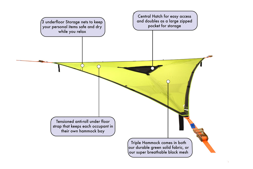 Tree tents and camping hammocks need no ground preparation or clearing of vegetation. Tread lightly on the earth with a unique camping experience that connects you more closely with nature’s canopy.