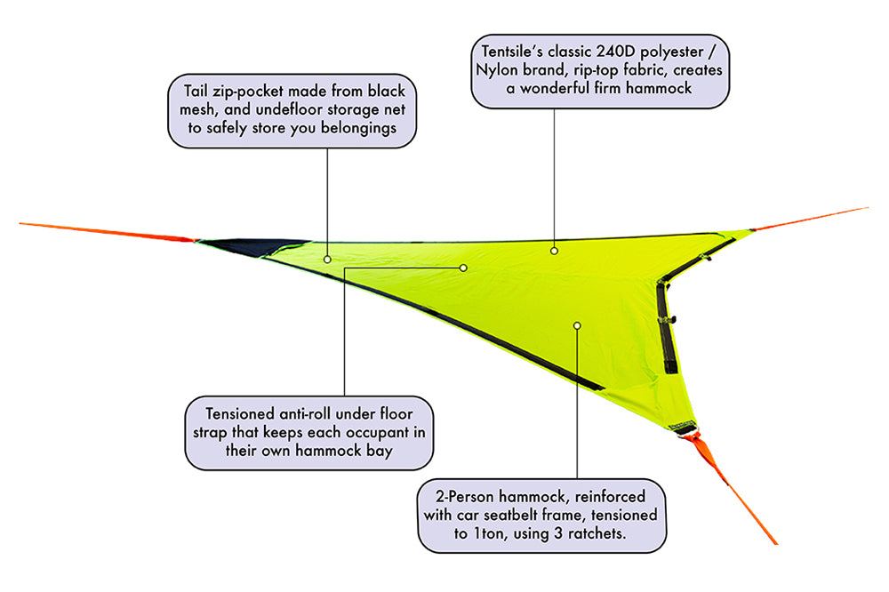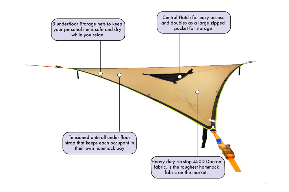 The Tentsile range of Tree Tents and Camping Hammocks are built using our unique 3-point anchor system, giving you a firm but comfortable floor with minimal sag.