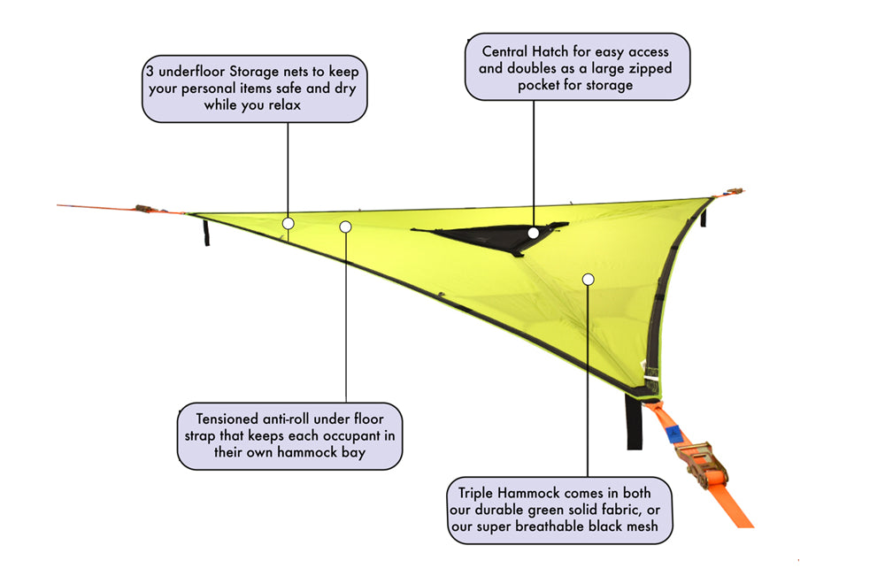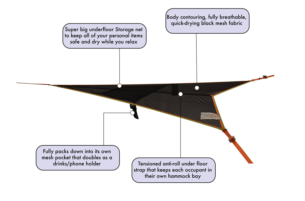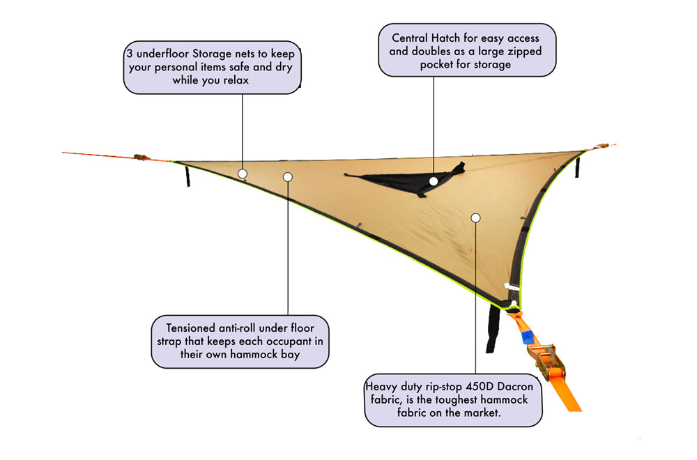 The Tentsile range of Tree Tents and Camping Hammocks are built using our unique 3-point anchor system, giving you a firm but comfortable floor with minimal sag.