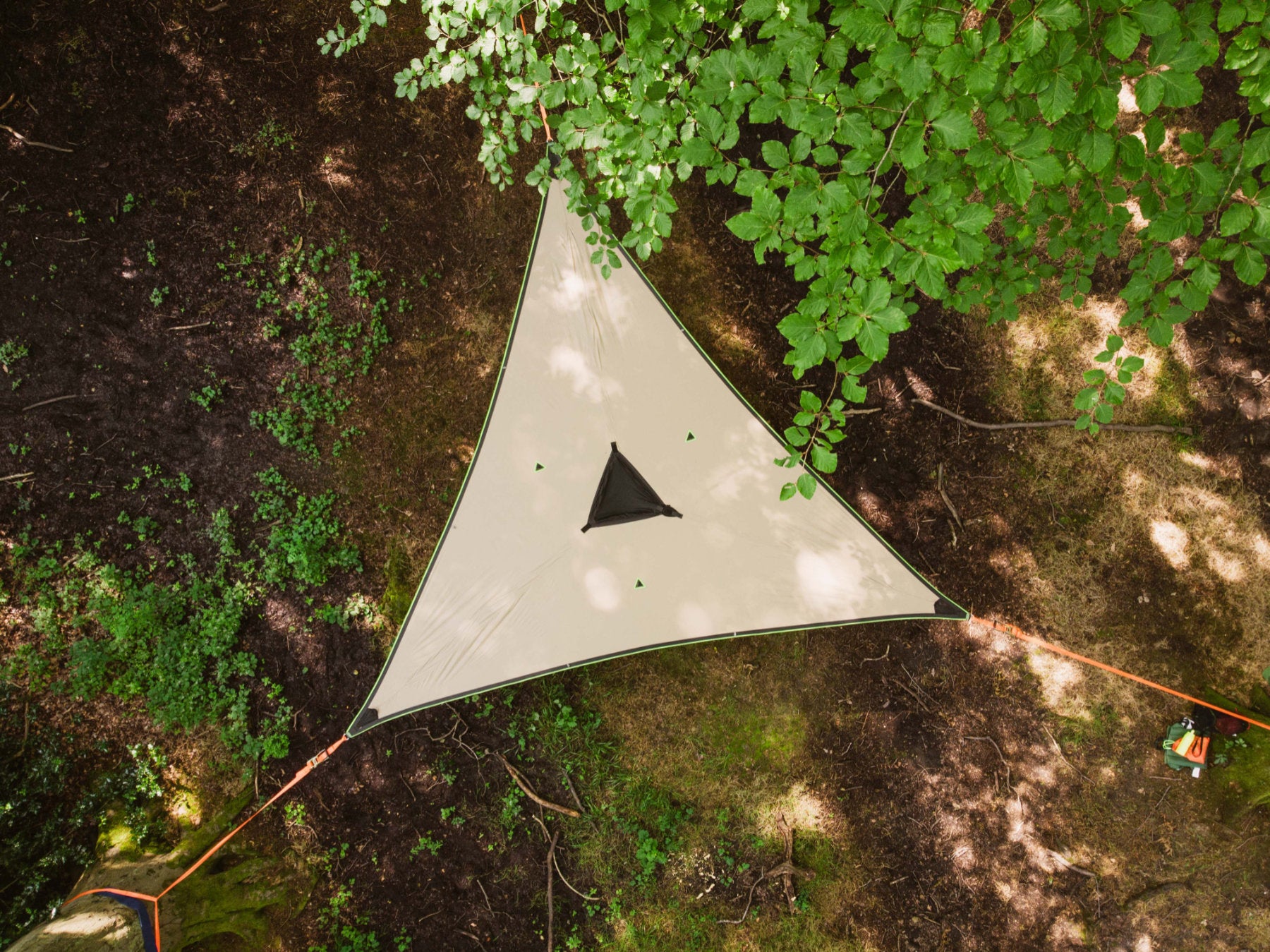 Made from Tentsile's signature PU coated, 600D Dacron fabric, reinforced by 30+ metres of seatbelt webbing, secured by 5 ton ratchets and includes 3 underfloor storage nets. It also has a fun hatch entry point in the centre for coming up through, which has a huge built-in pocket!