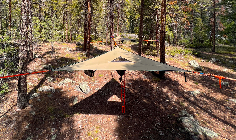 L'amaca gigante Safari Trillium per 3 persone offre un comfort robusto e avvolgente, simile a quello di una nuvola, per te e i tuoi amici che desiderate trascorrere momenti piacevoli sugli alberi. I Trillium Tentsile sono leggendari. Acquistane uno, saltaci dentro e scopri perché!