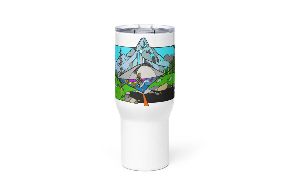 The Tentsile Thermal Mug with colourful print of our Flite 2-Person Tree Tent in a mountainous environment, is the perfect camping accessory. It keeps your beverage at the right temperature for longer, whether you want it hot or cold. Enjoy your adventures and continue to Play, Camp and Explore!