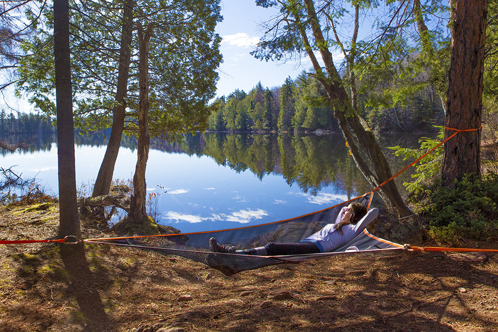 This double-hammock was designed to fit 2 adults in complete comfort and is reinforced with seatbelt webbing, creating 2 separate sleeping spaces and preventing you from rolling into the middle of the hammock. Unlike other hammocks, the T-Mini offers cloud comfort with little sag.
