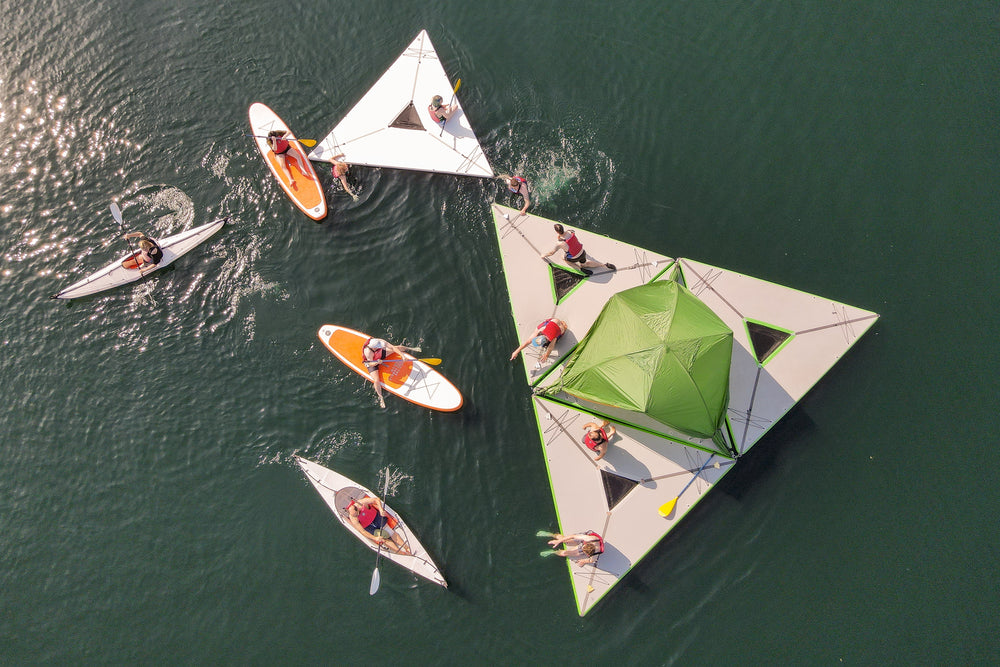 The rigid inflatable SUP base provides insulation in both ground and air modes but also allows the tent to float on water. This provides an amazing sunbathing deck and play structure, great for summer days at the lake or even for some casual fishing.